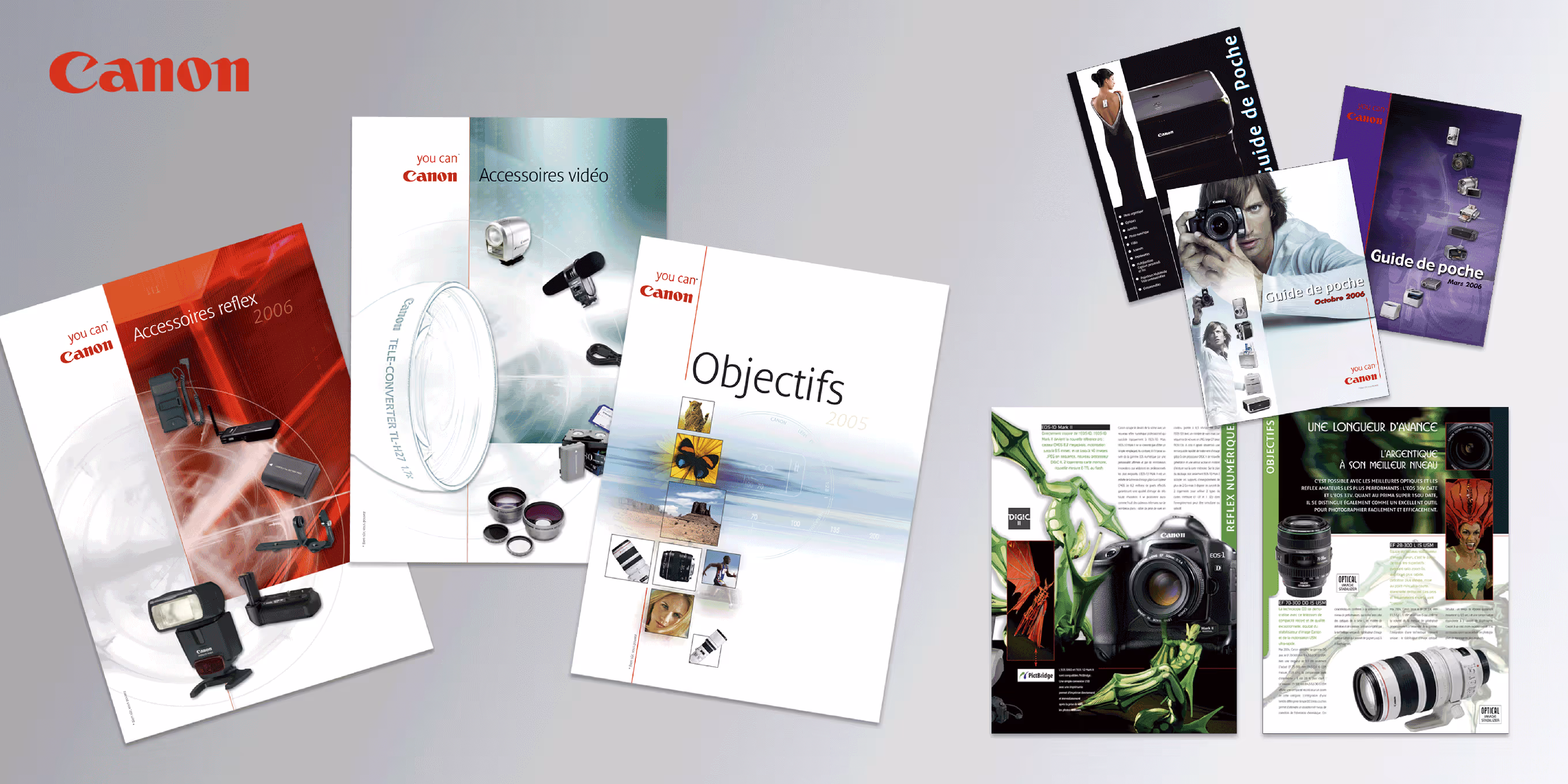 Réalisation de multiples supports de communication pour la marque Canon, autour de l’univers de la photographie